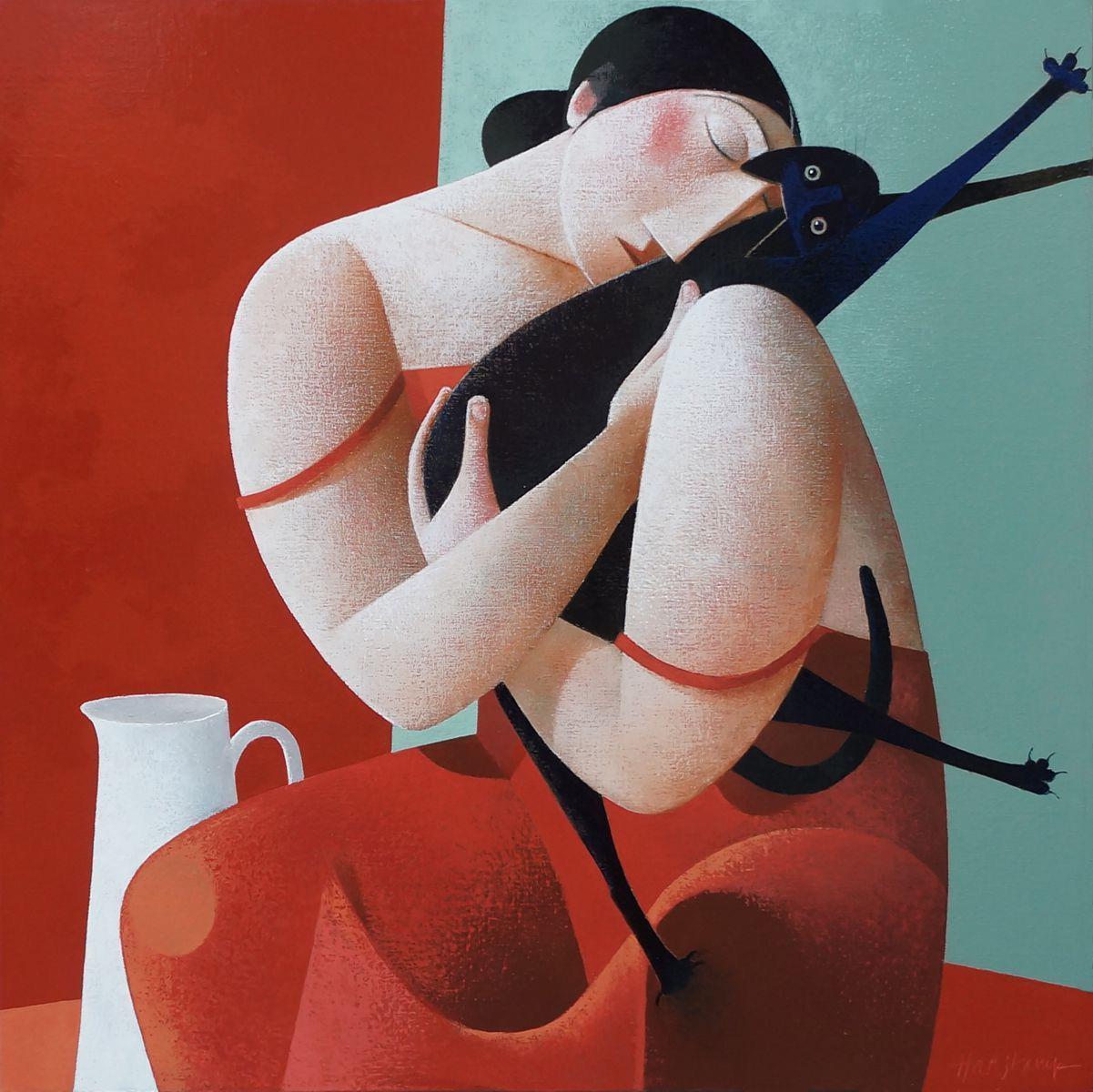 Peter H. Harskamp (1951-), Woman and Cat.jpeg